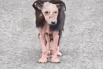 Обратный отсчет к трансформации испуганной собаки без шерсти