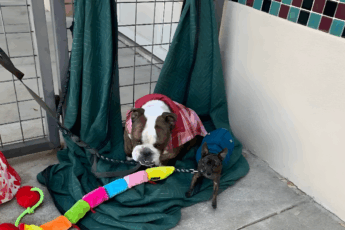 Pracownicy organizacji ratującej zwierzęta w Austin natrafili na dwa psy przywiązane do furtki schroniska