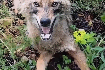 Podczas leśnego spaceru pewien mężczyzna natknął się na kojotkę w wyraźnym stanie zagrożenia — zwierzę