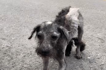 Na skraju jezdni zauważono skrajnie wyniszczonego psa — jego skołtuniona sierść i wychudzona sylwetka