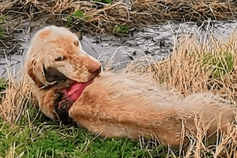 Сцена, которую трудно забыть: с открытой пастью и каплями крови, неумолимо падающими на землю, собака-мать
