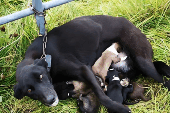 W odludnym miejscu odnaleziono dwuletnią samicę rasy galga przywiązaną mocnym łańcuchem do metalowego słupa.
