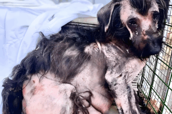 Przez długi okres — być może miesięce lub nawet lata — ten pies żył w skrajnie ograniczonych warunkach