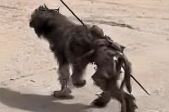 W zakamarku zniszczonej, opuszczonej konstrukcji leżała ona — ledwie rozpoznawalna istota, ciało zniekształcone