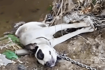 Pies, który przez 8 lat żył przywiązany, nie może uwierzyć, że ma własne łóżko Po przewiezieniu do schroniska