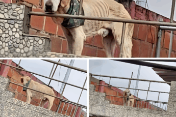Utrudzony, z zapadniętym spojrzeniem i drżącymi łapami, pies czekał samotnie na dachu — jego wychudzone