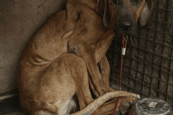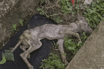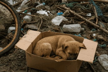 Leżał na starej szmacie porzuconej przy drodze i wyglądał jak część śmieci — między foliowymi torbami