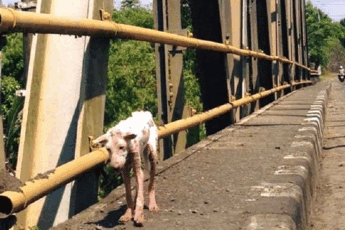 Stał na skraju mostu, chwiał się ze słabości, a jego wychudzone ciało drżało pod palącym słońcem.