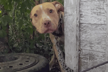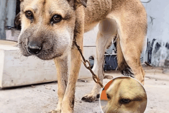 Stał przy betonowym progu jak cień, przywiązany do obcego domu. Zardzewiały łańcuch ranił szyję, żelazne