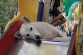 Na dziecięcej zjeżdżalni — cisza,Leży szczeniak, jak cień bez snu.W jego oczach — cały świat pusty,Zapomniany