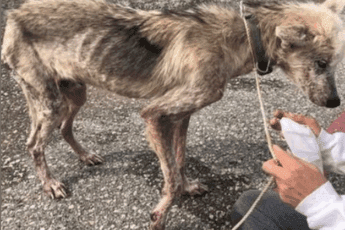 Stał na drodze, chwiejąc się z wycieńczenia. Jego ciało było jednym wielkim żebrem, skóra zwisała fałdami