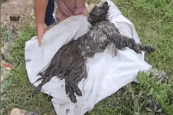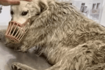 Leżał na metalowym stole, jego ciało drżało ze słabości. Sierść była skołtuniona w brudne kłaki, na łapach