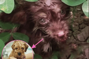 Siedział skulony wśród mokrych liści, jakby sam świat chciał ukryć go przed ludzkimi oczami.