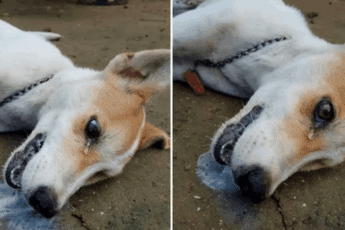 On nie skomlał. Nie szczekał. Nawet nie próbował się odpełznąć. Po prostu leżał — na zimnej, zakurzonej
