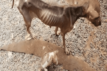 In einer erschütternden Szene fand sich eine erschöpfte Hündin mit einem fast hilflosen, zitternden Welpen