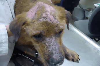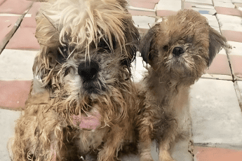 Na poboczu drogi, słaba i wyczerpana, leżała suczka — w ciąży, niemal pozbawiona sił. Jej ciało wyglądało