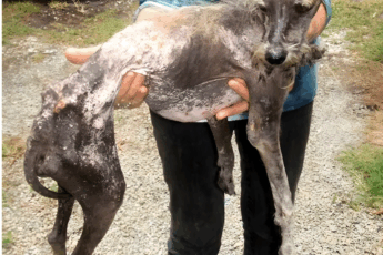 Zmęczony, ze spojrzeniem pełnym rezygnacji i chwiejnymi łapami, leżał samotnie na dachu — wychudzone