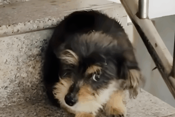Kiedy pewnego wieczoru kobieta wracała na swoje piętro, natrafiła na maleńkiego psa skulonego tuż przy schodach.