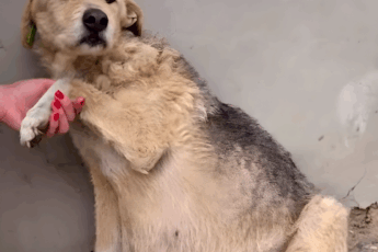 Mała Zhuzha — około dwuletnia suczka prawdopodobnie porzucona w trakcie konfliktu na Ukrainie — trafiła