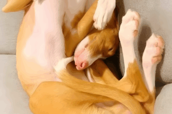 Gdy nasze psy odpływają w sen, zwykle zwijają się w miękki kłębek na legowisku. Jednak Nico — niezwykle