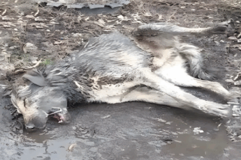 Obraz, który poruszył wielu: mały pies leżał bezwładnie w zimnym błocie, całkowicie pokryty warstwą mułu