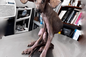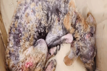 Mały piesek, porzucony i osierocony przez właściciela, przeszedł przez skrajne niedożywienie i nieleczone
