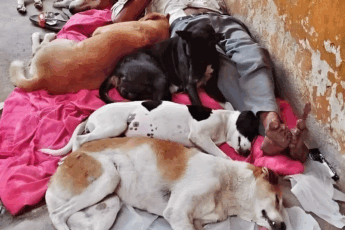Psy drzemały na jego piersi, oddychając tak cicho, że można było pomylić ich oddech z przebiegiem nocnego