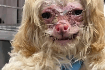 Jej pysk wyglądał, jakby rzeki przeorały skórę — z taką twarzą stanęła w drzwiach schroniska i pierwszy