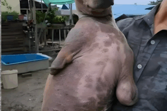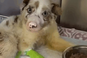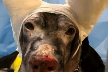 Na brzegu karetki pojawił się on — duży, czarny pies z głową owiniętą bandażem, którego końce sterczały