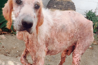 Na skraju jezdni przechodnie natrafili na zaniedbanego psa — później otrzymał imię Lucky. Zwierzę leżało