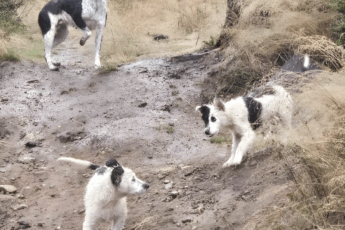 Ratownicy jadący poboczną, gruntową drogą natrafili na całą rodzinę psów skulonych w ulewie — przemokniętych