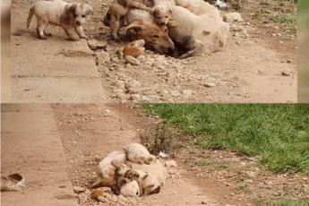 Gdy zgłoszenie dotarło do zespołu ratunkowego, informowało o suce, która urodziła siedem maleństw w pobliżu fabryki.