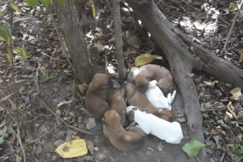 W cieniu pagody odnaleziono psa, który przez długi czas zmagał się z poważnym schorzeniem — jego ramie