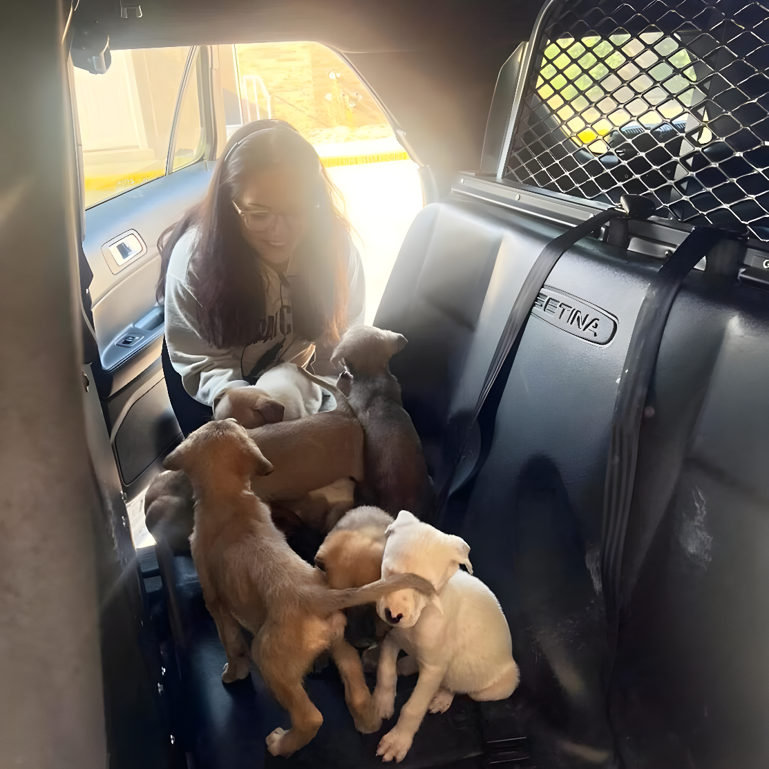 Niedaleko skrzyżowania 9th i Maple patrol otrzymał zgłoszenie o porzuconych szczeniętach przy poboczu. Po przybyciu na miejsce okazało się, że ktoś pozostawił tam całe mioty — w sumie trzynaście młodych psów. Widok i świadomość panujących upałów skłoniły funkcjonariuszy do natychmiastowego działania.