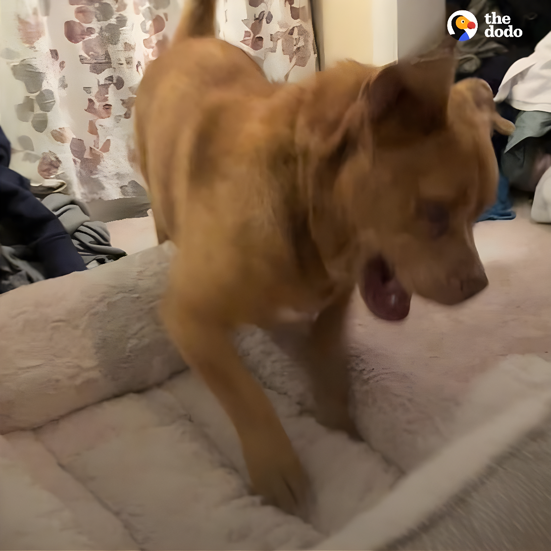 Pies, który przez 8 lat żył przywiązany, nie może uwierzyć, że ma własne łóżko