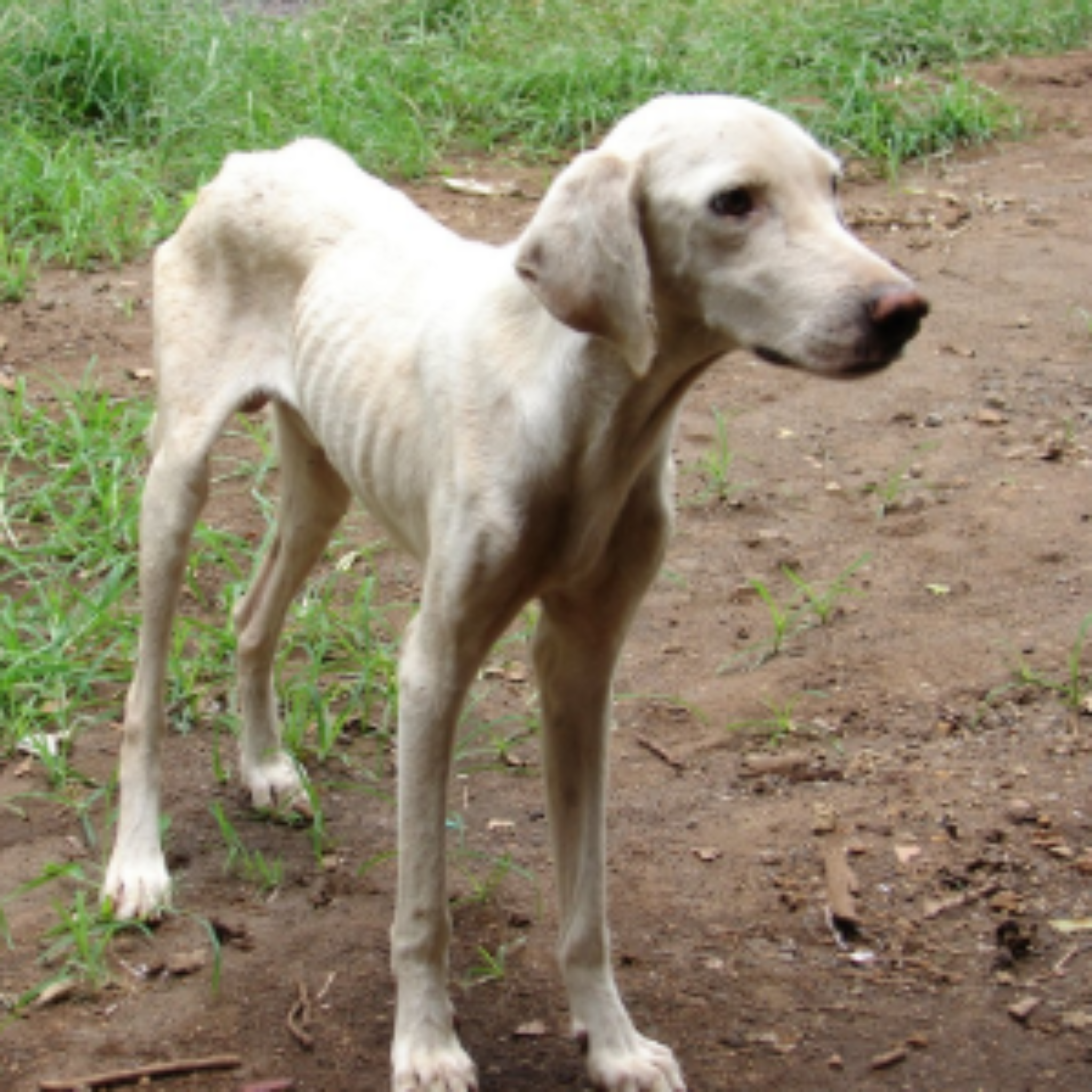 Stała chwiejna i krucha, jak cień samej siebie. Biała sierść prawie nie zakrywała kości, a każde żebro wystawało na zewnątrz, przypominając o głodzie i długich dniach, kiedy jedzenie było tylko wspomnieniem. W jej oczach nie było agresji — jedynie nieskończone zmęczenie i ciche oczekiwanie.