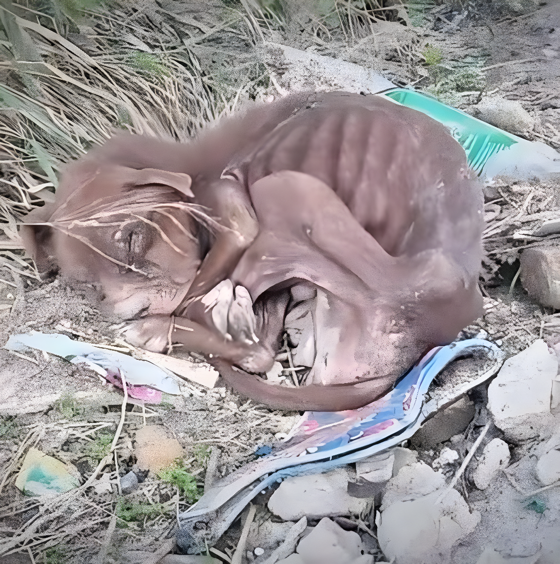 Znalazłem go na opustoszałej przestrzeni, wśród kamieni i poplamionych skrawków materiału — mały, skurczony kłąb życia, którego oddech ledwie drżał. Nie miał siły podnieść głowy, a łapki drżały nawet podczas snu; wyglądał, jakby każdy powiew wiatru mógł przerwać to kruche istnienie.