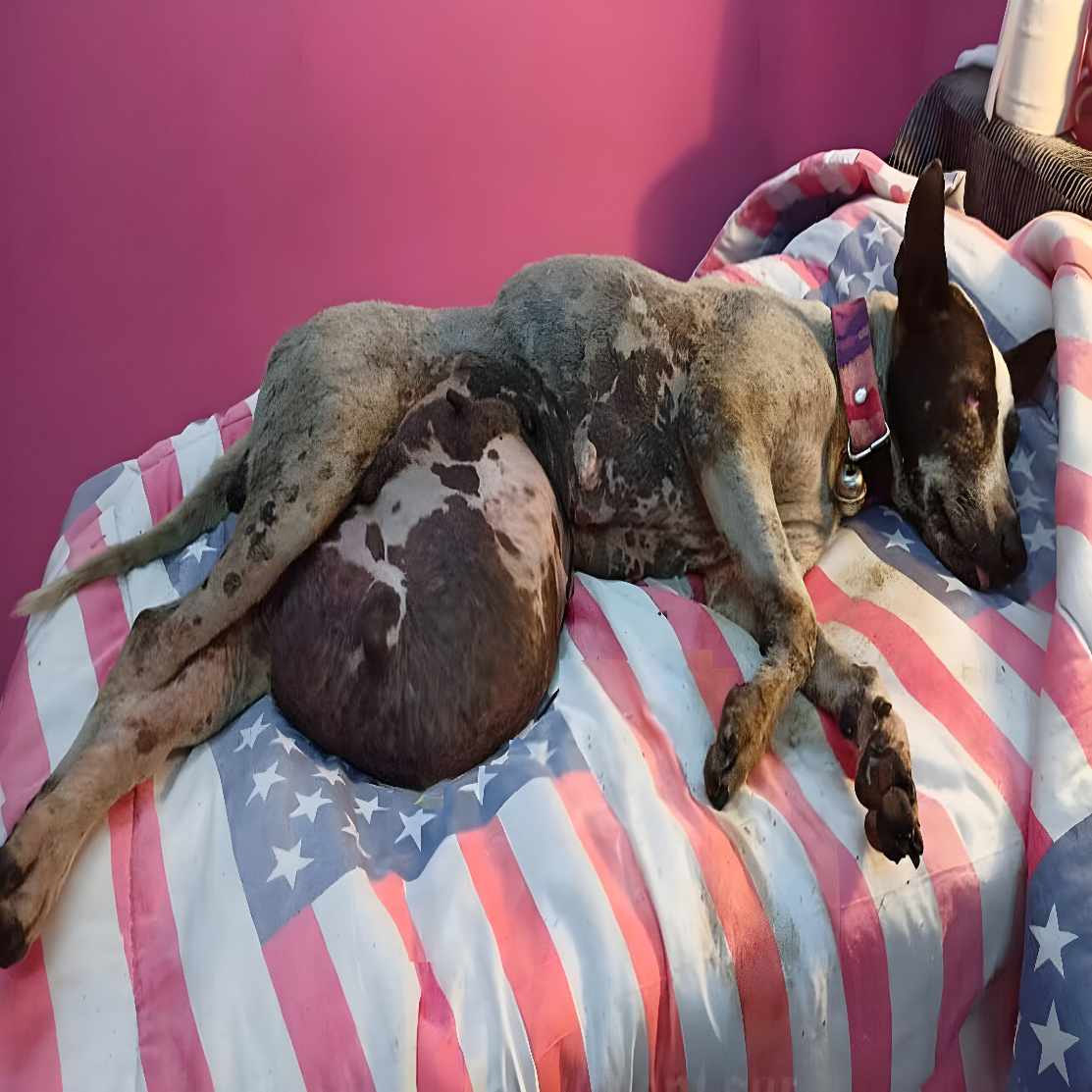 Kiedy przyjrzeli się bliżej, brzuch suczki był wyraźnie powiększony — początkowo przypuszczano, że przyczyną może być duża zmiana nowotworowa.