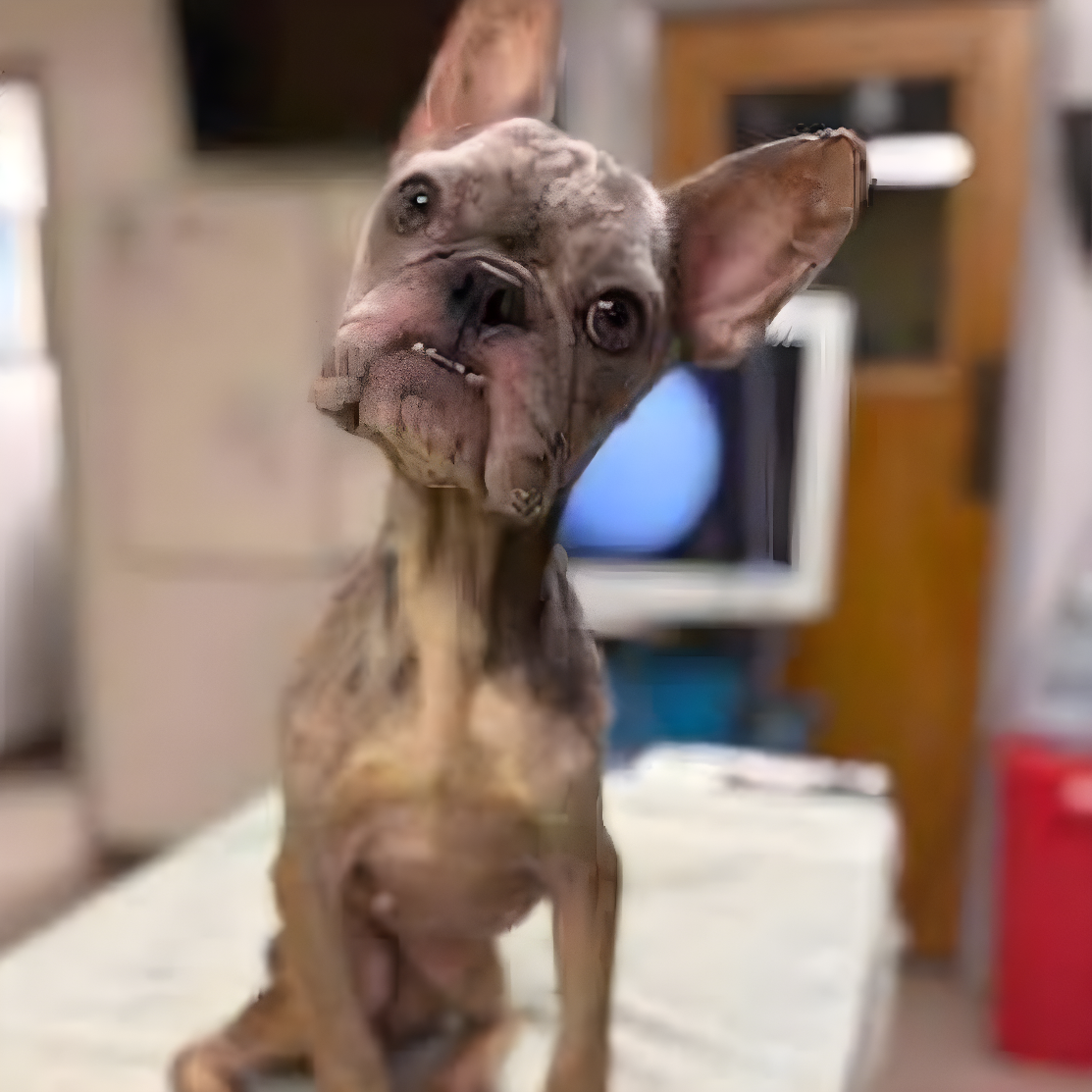 W poczekalni lecznicy panował chaos: metalowe kuwetki, ruchliwe nosy w transporterach, rozmowy pełne niepokoju i zapachy chloru. Pośród tego zgiełku zauważyłam niewielkie ciało skulone na skraju stołu — wyglądało, jakby ktoś zostawił tam filiżankę. Chudy, z dużymi uszami i lekko skrzywioną mordką, przypominał zagięty kawałek drutu. Na nim wisiała luźna szelka, a w oczach malowało się to, co mają w sobie zwierzęta próbujące uprzedzić zło: uśmiech wymuszony na wszelki wypadek.