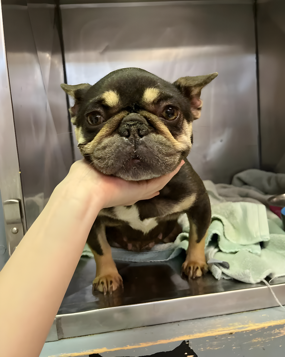 Внутри находился крошечный французский бульдог, который был оставлен без ничего, кроме короткой записки.
