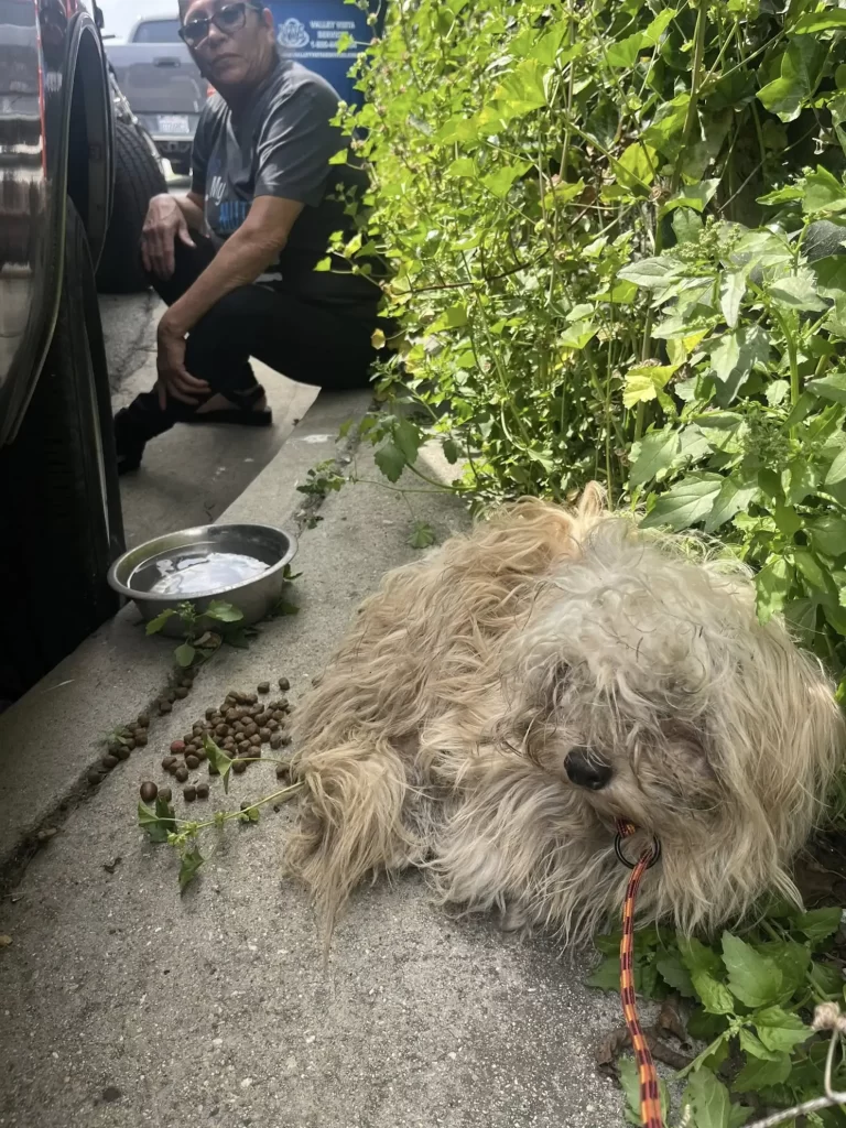 Szukając elementów, które mogłyby zapobiec ucieczce — pojemników na śmieci, furtek, luźnych paneli ogrodzeniowych — obie wiedziały, że spanikowane zwierzęta często uciekają. Ten maluch był jednak wycieńczony. Gdy Hall podeszła powoli i założyła mu smycz, nie stawiał oporu. Zamiast szczekać czy szarpać się, najpierw się zastygł, potem się rozluźnił, jakby czekał na ten moment całe życie.