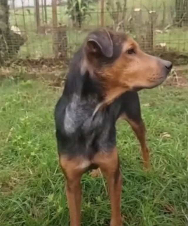 Jego mowa ciała nie pozostawiała złudzeń: skulony garb, cicha rezygnacja i strach widoczny na twarzy — Max był skrajnie wycofany. Właściciel długo wahał się przed oddaniem go pod opiekę, lecz dzięki współpracy z policją cywilną udało się przeprowadzić interwencję i zabrać go w bezpieczne miejsce.