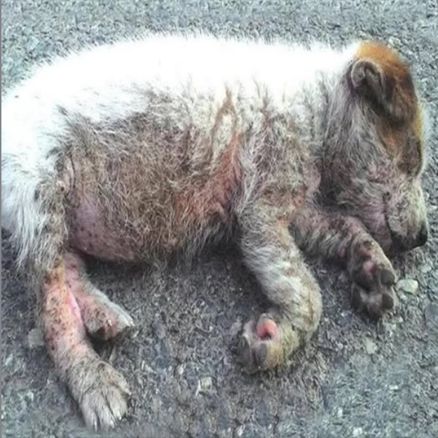 Leżał na zimnym asfalcie, jak mały kłębek brudu, nikomu niepotrzebny, zapomniany i porzucony. Jego sierść, kiedyś biała, była teraz przesiąknięta kurzem, który wchłonął wszystkie dni bezdomnego życia. Był jeszcze maleństwem, ale jego oczy zamknęły się ze zmęczenia, jakby cały świat postanowił zbyt wcześnie odebrać mu prawo do dzieciństwa. Jego oddech był słaby i urywany, łapki drżały nawet we śnie, a brzuszek puchł z głodu i od brudnej wody, którą próbował ugasić pragnienie.