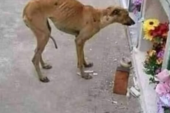 Cmentarz zawsze witał go zapachem kamienia i kwiatów. Cisza tutaj była inna — nie pusta, lecz wypełniona oddechem tych, których już nie było. Psy wyczuwają takie rzeczy ostrzej niż ludzie — on czuł to w każdej sekundzie. Jego wychudzone ciało ledwo trzymało się na łapach, kości wystawały, sierść była skołtuniona, ale oczy wciąż pozostawały żywe. Płonęła w nich wierność, której nic nie mogło wypalić.