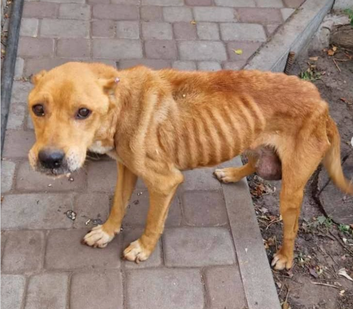 Czasami ból nie krzyczy. On po prostu stoi na czterech łapach, wychudzony do granic możliwości, z oczami, w których dawno zgasła nadzieja. Spójrz na to zdjęcie. Nie odwracaj wzroku. To nie jest tylko pies — to dusza, która kiedyś była kochana, a później stała się ofiarą ludzkiej obojętności.