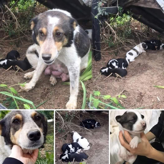 🌿 W gęstych krzakach, pod resztkami starego płotu, los ukrył prawdziwy dramat. Wyczerpana, ale dumna suczka siedziała obok swojego skarbu – siedmiu maleńkich kuleczek życia. Jej sierść była zmierzwiona, oczy – zmęczone, ale pełne determinacji. Nie miała domu, miski z wodą ani ciepłego posłania, ale miała coś więcej: serce matki, które biło tylko dla tych maluchów.