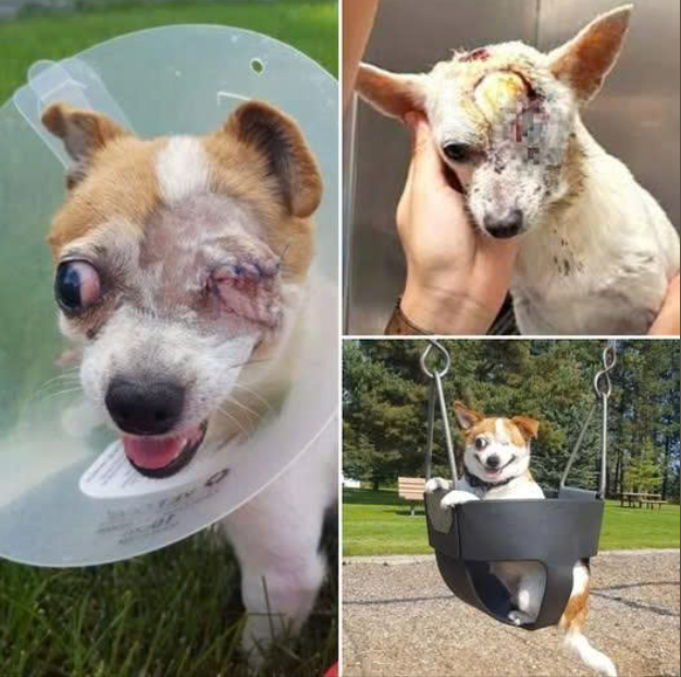 Mijały tygodnie. Uczyła się żyć na nowo — bez jednego oka, ale z ogromnym sercem. Każdy dzień przynosił nowe, małe zwycięstwa. Najpierw — ostrożny krok do miski. Potem — próba podniesienia ogona. A później — pierwszy nieśmiały znak radości, kiedy pozwoliła sobie merdać ogonem, witając tych, którzy przychodzili ją odwiedzać.