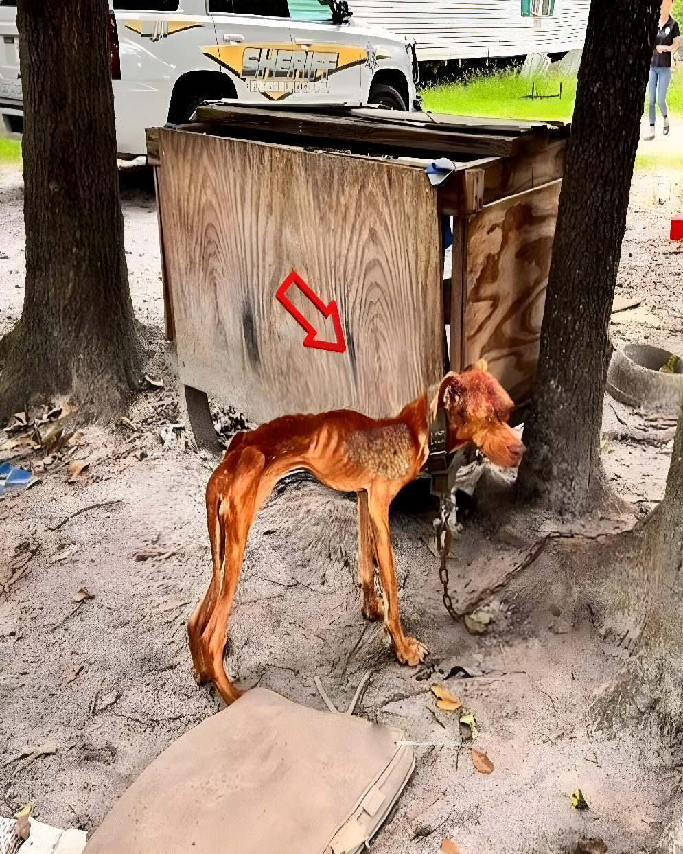 W czasie akcji eksmisyjnej prowadzonej przez biuro szeryfa odkryto psa pozostawionego w warunkach skrajnego zaniedbania. Zwierzę od długiego czasu było unieruchomione przez linę zaciskającą się wokół szyi — wystawione na kaprysy pogody i długotrwałe cierpienie.