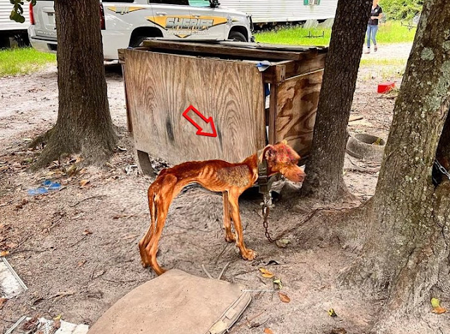 W trakcie egzekucji eksmisyjnej prowadzonej przez departament szeryfa natrafiono na psa w skrajnie złym stanie — zwierzę było przez lata krępujące liną przywiązane do posesji, wystawione na kaprysy pogody i głęboki ból wynikający z zaniedbania.