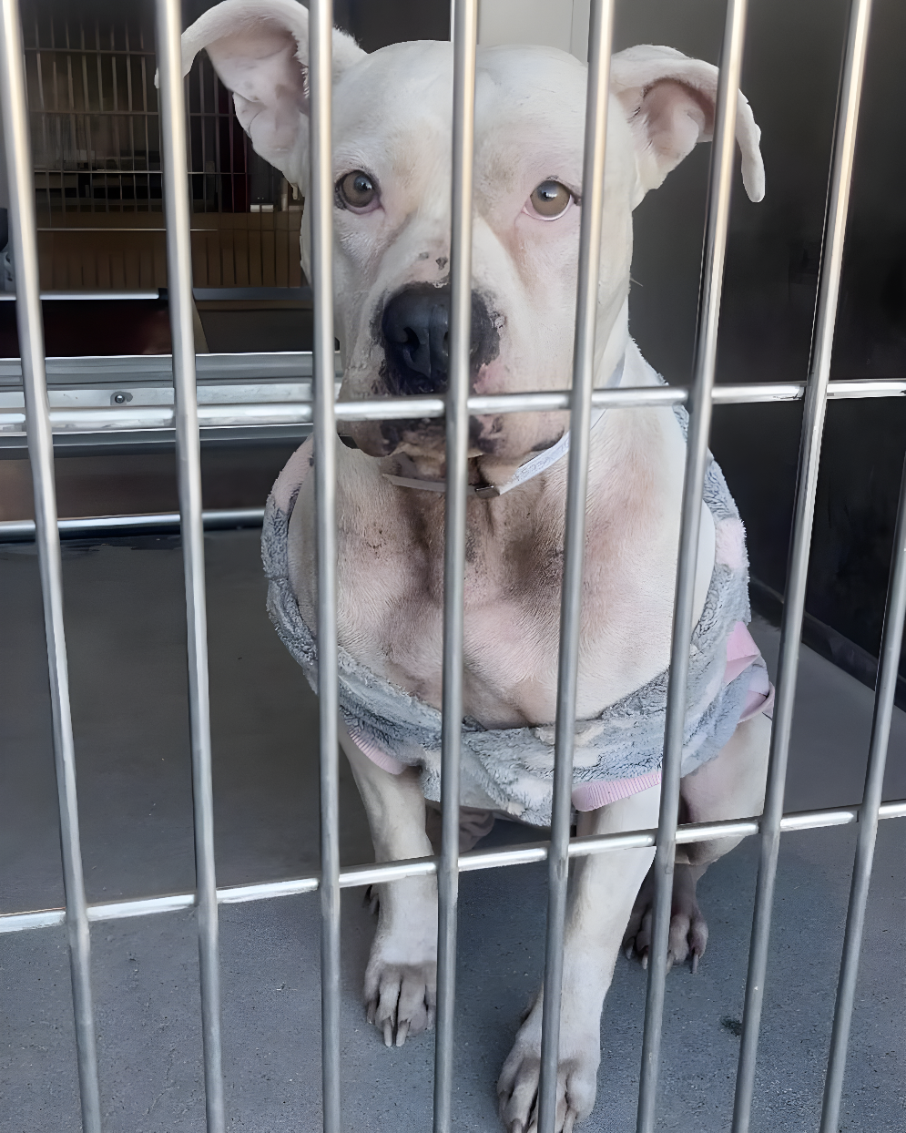 W Lancaster Animal Care Center Korra przybyła drżąca w małym zestawie piżam — takich, które miały zapewnić psu komfort, a nie zastąpić rodzinę. Siedziała przyciśnięta do tylnej ściany swojego boksu, wpatrując się w zimne metalowe kraty, jej oczy wciąż szukały drzwi, które już się nie otworzyły. Dźwięki szczekających psów rozbrzmiewały wokół niej, lecz ona pozostawała cicha, oczekując znanych kroków, które nigdy nie wróciły. Gdy wolontariuszka schroniska Evelyn Garces po raz pierwszy ją zobaczyła, od razu wyczuła, że to nie był pies, który by źle się zachowywał czy atakował. Korra była przestraszona — zamarznięta pomiędzy nadzieją a złamanym sercem. Evelyn usiadła cicho na podłodze przy jej boksie, mówiąc cicho, aż Korra w końcu powoli podeszła do niej, drżąc tak mocno, że jej łapy trzęsły się na ziemi. Ten moment złamał serce Evelyn, która w duchu obiecała, że ten pies nie zostanie zapomniany.